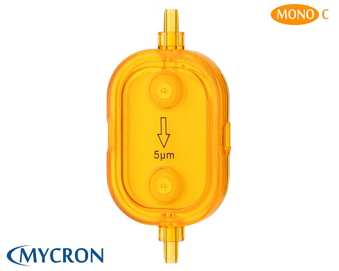 MONO-C filters are featured with single layer design, it’s integrated with 1 fluids membrane and 2 circular air vent membranes.Aqueous IV solutions
